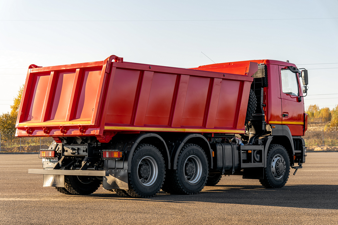 Самосвал с колесной формулой 6х4. Предназначен для перевозки различного рода строительных и сельскохозяйственных грузов по дорогам общего назначения (в том числе – в составе автопоезда).