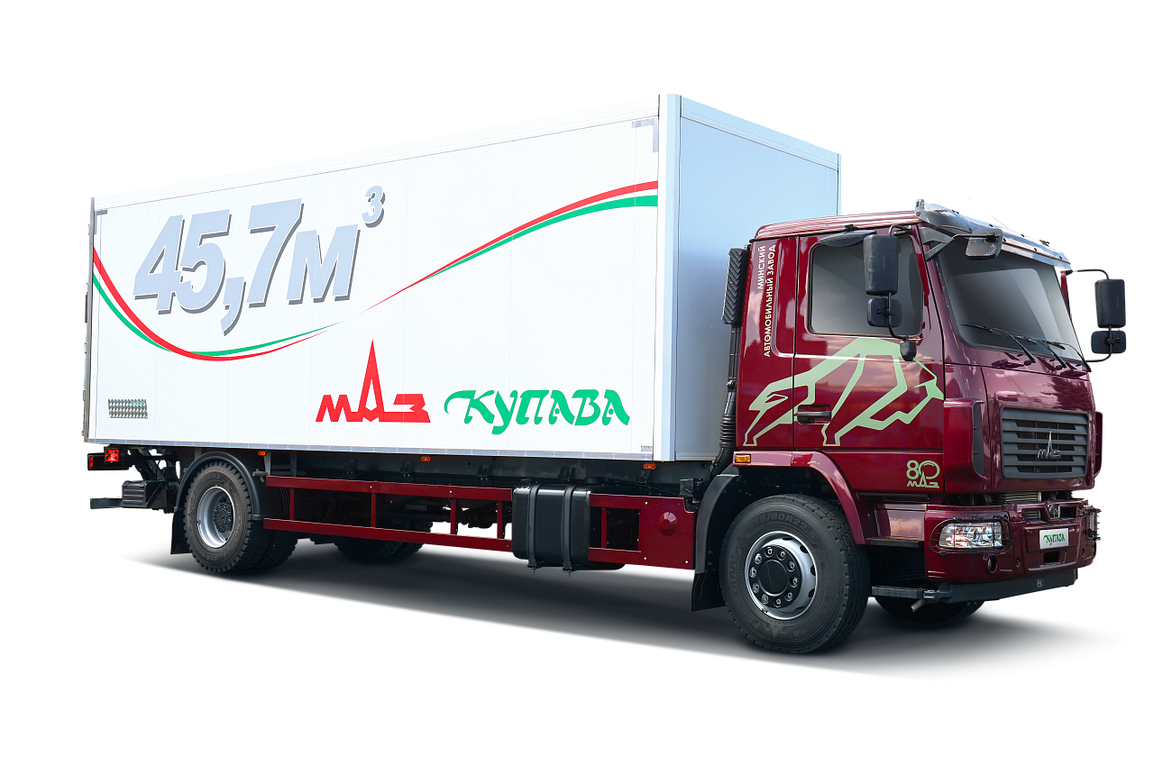 Дилерская сеть МАЗБортовой автомобиль МАЗ КУПАВА 571900 с объемом кузова 45.7 м3. Возможно оснащение гидробортом до 2.5 тонн.