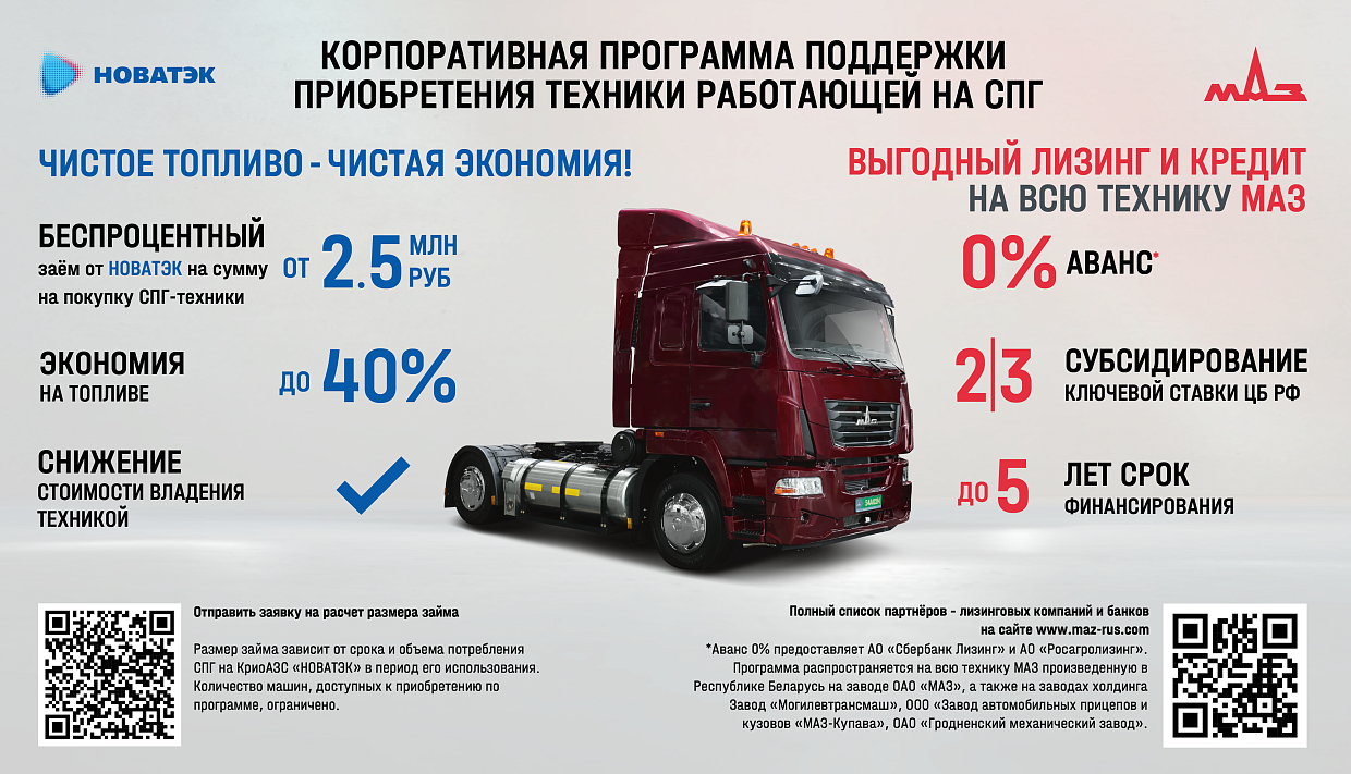 Корпоративная программа приобретения СПГ техники МАЗ от Новатэк.